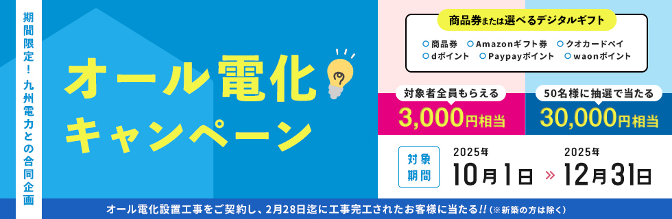 九州電力と一緒にオール電化促進を促す弊社だから出来る、期間限定合同企画キャンペーンです!